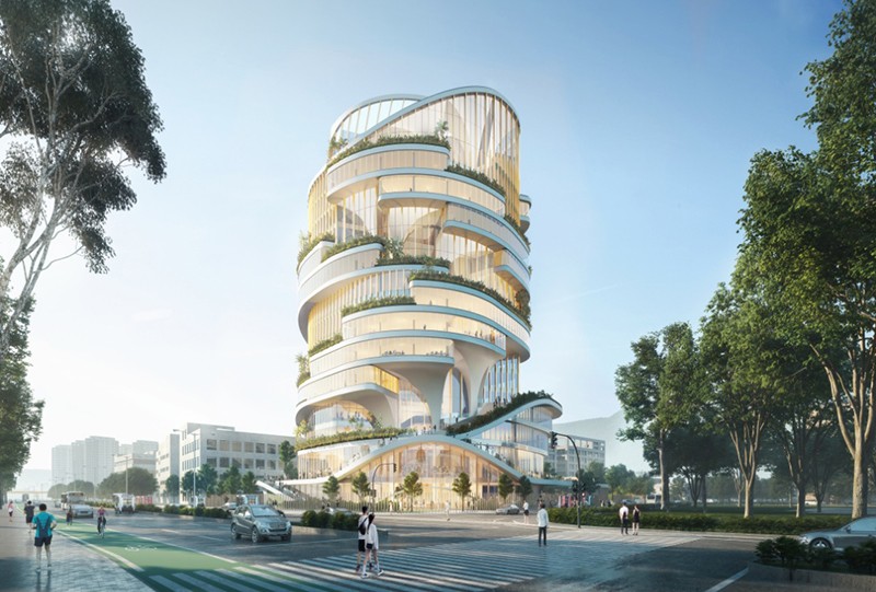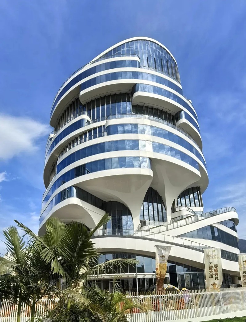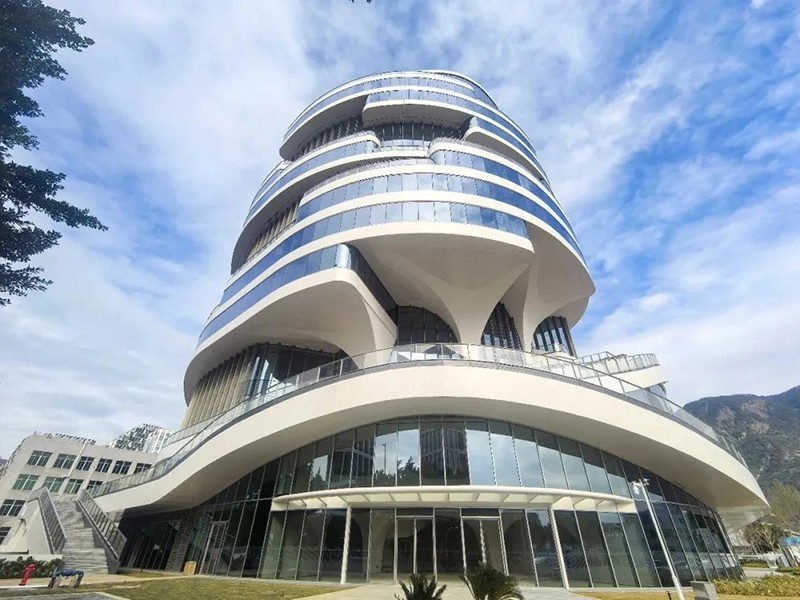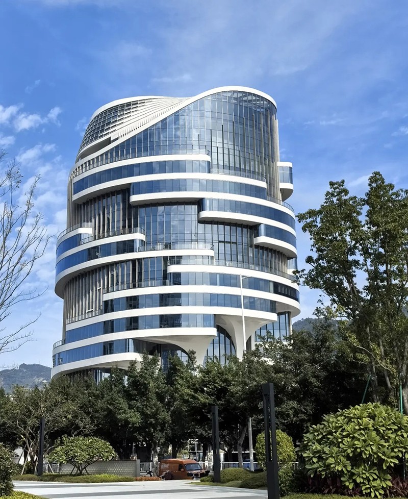 項目集辦公、公共商業復合空間、員工配套服務中心等多種功能于一體,在設計理念上,大廈巧妙融入了福州特色地域文化,以“神奇榕樹屋”為設計藍本,將福州市樹“榕樹”的骨骼脈絡作為核心筒的設計靈感,呼應了榕樹粗大的樹干。建筑平面則類似榕樹的分支,眾多戶外露臺形似榕樹的巨大樹冠,營造出一種通透、靈動的視覺感受。