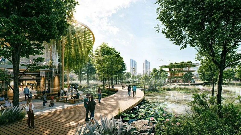 該方案以“以人為本、生態優先”為核心理念,致力于打造一個可持續發展的新一代城市中心,推動區域經濟繁榮。設計團隊通過創新方法與基于自然的解決方案,有效應對了洪水、交通流動性及宜居性等關鍵挑戰。方案構建了一個四通八達的城市公園網絡,不僅提升了區域生態環境,還為居民創造了全新的城市生活體驗。
