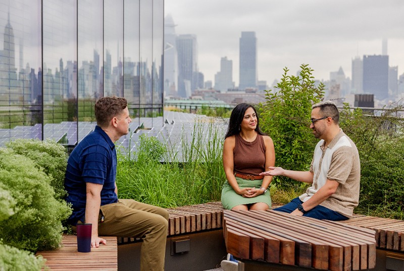 谷歌辦公樓將生態景觀與智能科技深度融合,打造復合型功能露臺:通過模塊化綠植墻形成天然氧吧,配合符合人體工學數據的戶外協作家具,構建出支持非正式會議、靈感激發與壓力緩解的彈性空間。