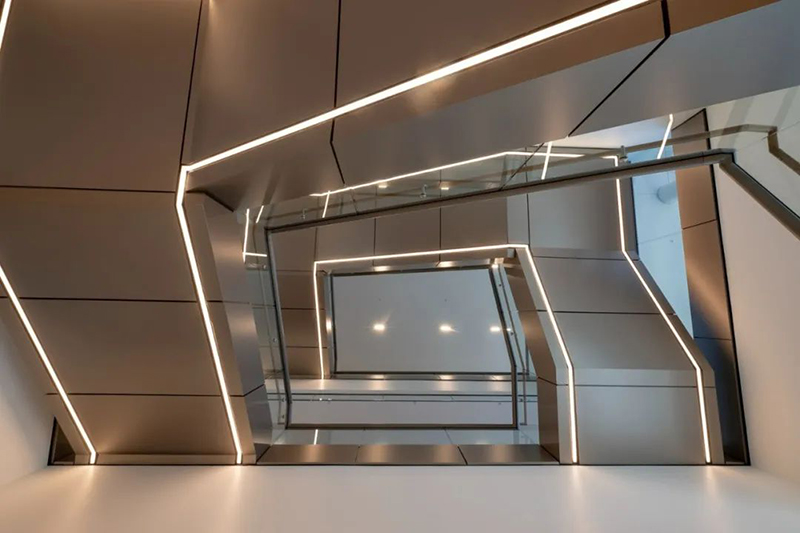 設(shè)計團隊通過采用低碳材料和先進的節(jié)能技術(shù),實現(xiàn)了13%的能耗減少。為進一步減少碳排放,建筑還設(shè)有高效的能源管理系統(tǒng),并在停車場內(nèi)提供電動車充電服務,支持可持續(xù)出行。此外,設(shè)計團隊采用了創(chuàng)新的雨水管理系統(tǒng),使周圍環(huán)境不受影響。通過園林綠化和灌溉策略的綜合應用,極大降低了對水資源的依賴。