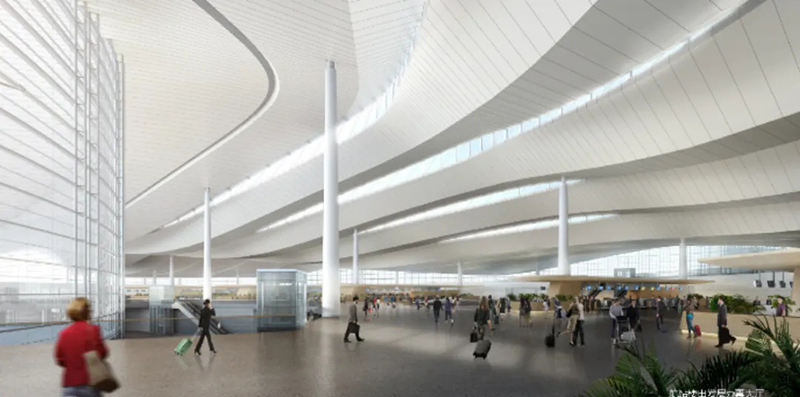 烏魯木齊天山國(guó)際機(jī)場(chǎng)的擴(kuò)建工程是國(guó)家“十三五”“十四五”重點(diǎn)建設(shè)項(xiàng)目,總投資約520億元,規(guī)劃建設(shè)兩條4F級(jí)跑道、50萬平方米的T4航站樓、177個(gè)停機(jī)位及綜合交通中心等設(shè)施;航站區(qū)采用“主樓+三指廊”構(gòu)型,地上四層、地下一層,可容納年旅客吞吐量3500萬人次,貨郵吞吐量55萬噸